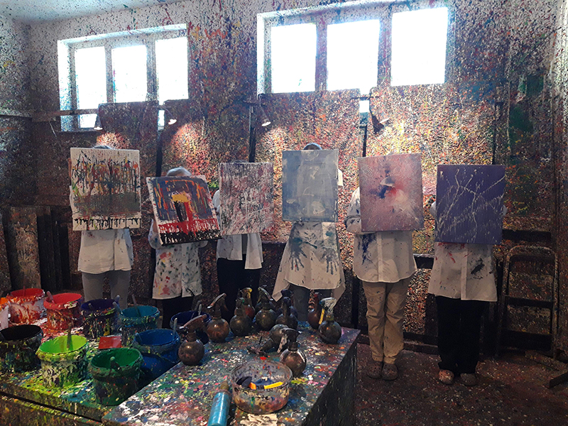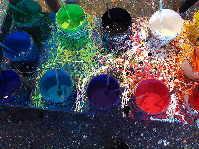 Die Kunst-Aktion ist eine Freizeitgestaltung, die Eltern hier ihren Kindern oft nicht bieten können. Sie sensibilisiert für Teamgeist und steigert die soziale Kompetenz. In der Pinselbude bekam jedes Mädchen eine Leinwand und durfte mit verschiedensten Utensilien grenzenlos kreativ sein. Angesagt war alles, was Spaß macht – angefangen bei farbtriefenden Pinseln, die vor der Leinwand abgeschüttelt wurden über akkurate Pipetten-Technik bis hin zu farbgefüllten Luftballons, die über den Leinwänden zum Platzen gebracht wurden. „Es war unglaublich spannend zu beobachten, wie sich die Bilder unter den verschiedenen Techniken immer wieder veränderten und wie unterschiedlich die Mädchen agierten“ erzählt Ilka Bredemann, Trainerin beim NTV 09. „Alle hatten viel Spaß, ob beim Actionpainting oder später beim Verzieren ihrer Gesichter, Hände und Malkittel. Es war ein toller Tag, den uns Mehr Aktion! ermöglicht und unsere Mädels zu einem noch besseren Team gemacht hat.“