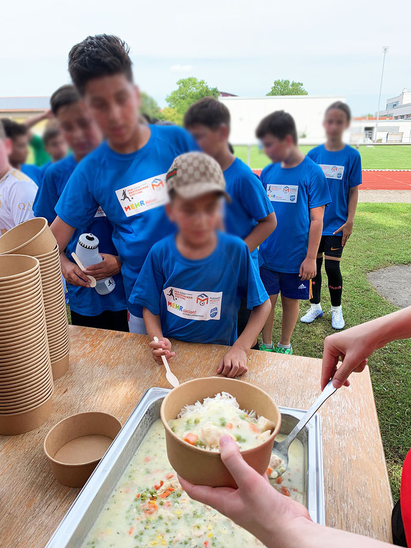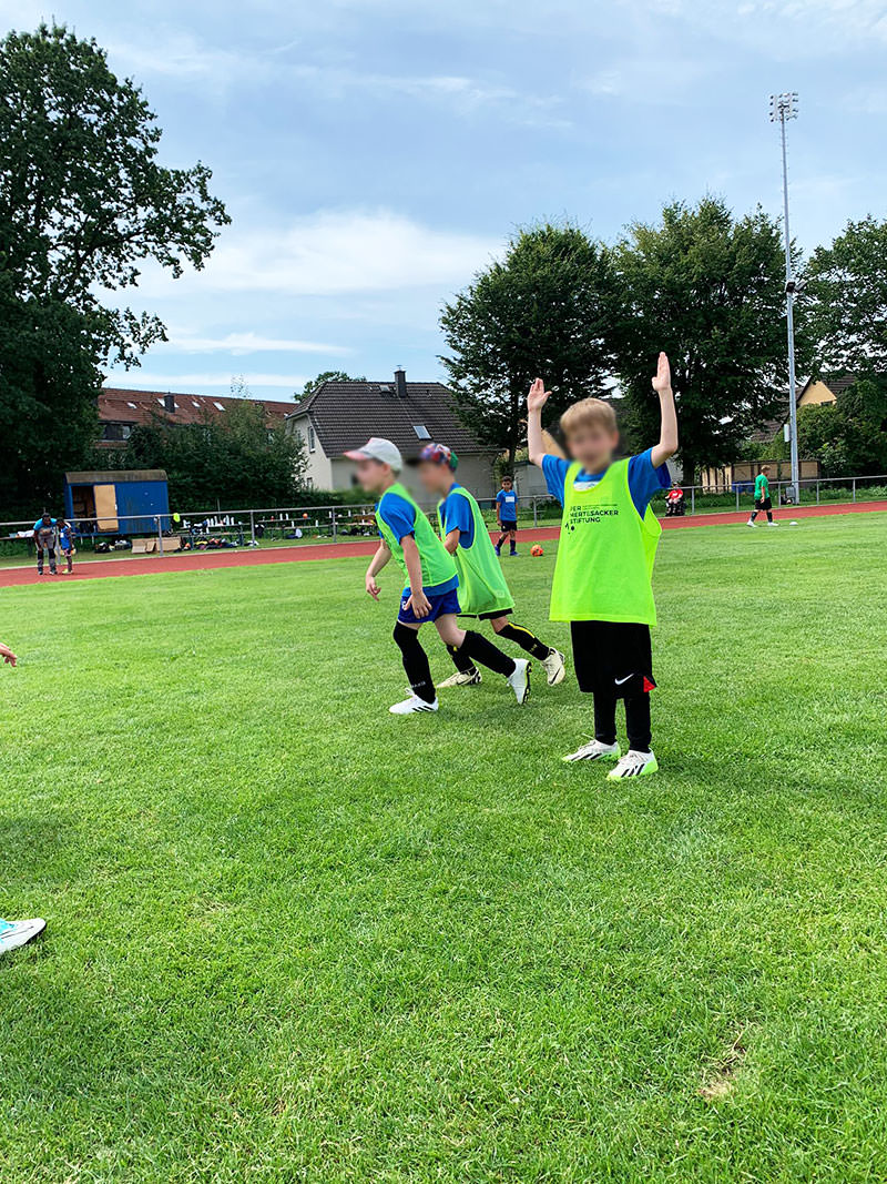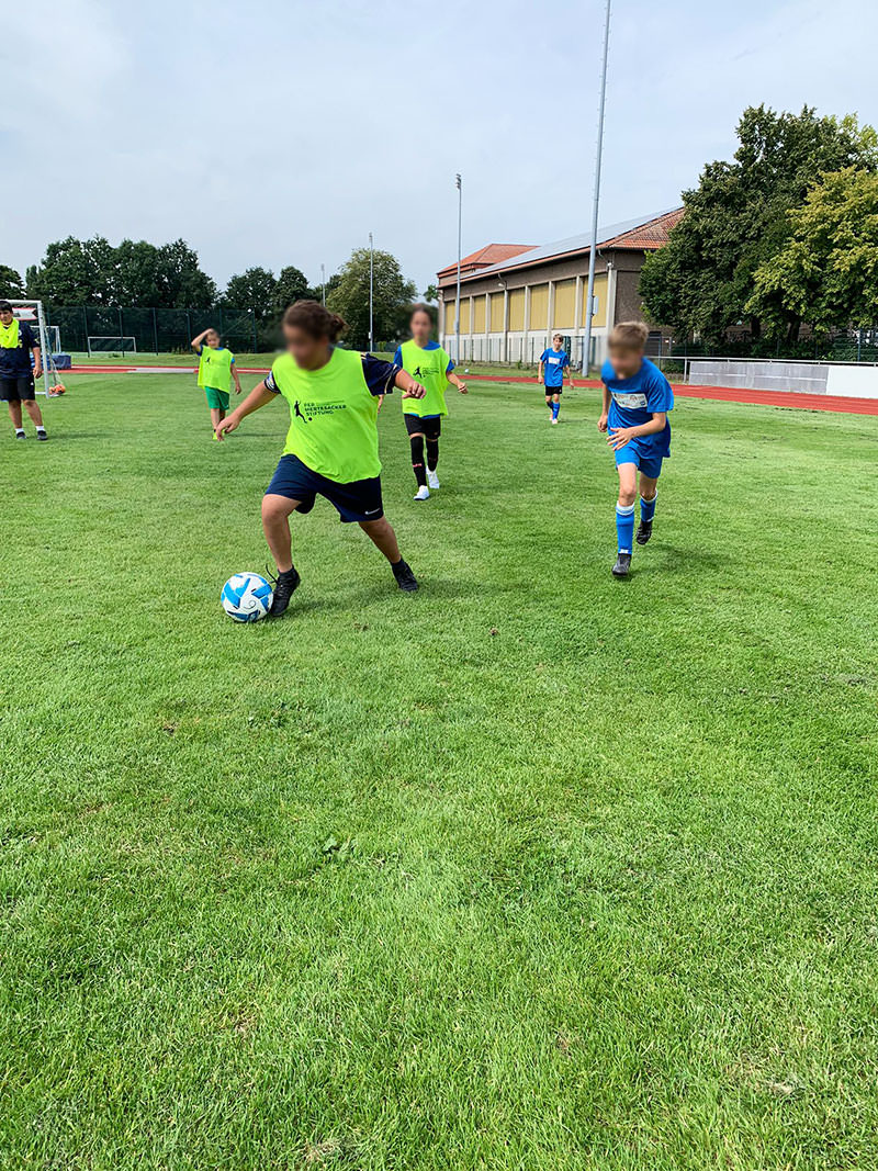 Als fördernswert bewertete Mehr Aktion! auch die Initiative des Vereins Sport als Chance e.V. Gleich am ersten Anmeldetag war das Angebot ausgebucht – das Fußball-Camp von Sport als Chance. Fast 70 Jungen und Mädchen aus sozial benachteiligten Familien nahmen vom 30. Juli bis 2. August 2024 teil. Das Camp in Garbsen bot Fußballbegeisterten zwischen 7 und 12 Jahren vier Tage Bewegung, Spiel und Spaß. Schon seit drei Jahren veranstaltet der Verein das Camp, immer in Stadtteilen mit besonderen gesellschaftlichen Herausforderungen – Garbsen auf der Horst ist durch eine sehr multikulturelle Bevölkerung geprägt. Dem Verein ist es wichtig, benachteiligten Kindern eine Teilnahme zu ermöglichen. Dabei geht es nicht nur ums Kicken, sondern auch um Bewegung und Motorik, neue Freundschaften, Wir-Gefühl, mehr Ausgeglichenheit, Probleme hinter sich lassen uvm. Auf dem Programm standen Dribbeln, Schießen, Torwarttraining, Turniere und Kooperations-/Vertrauensübungen, die die Gruppen enger zusammenbringen.
